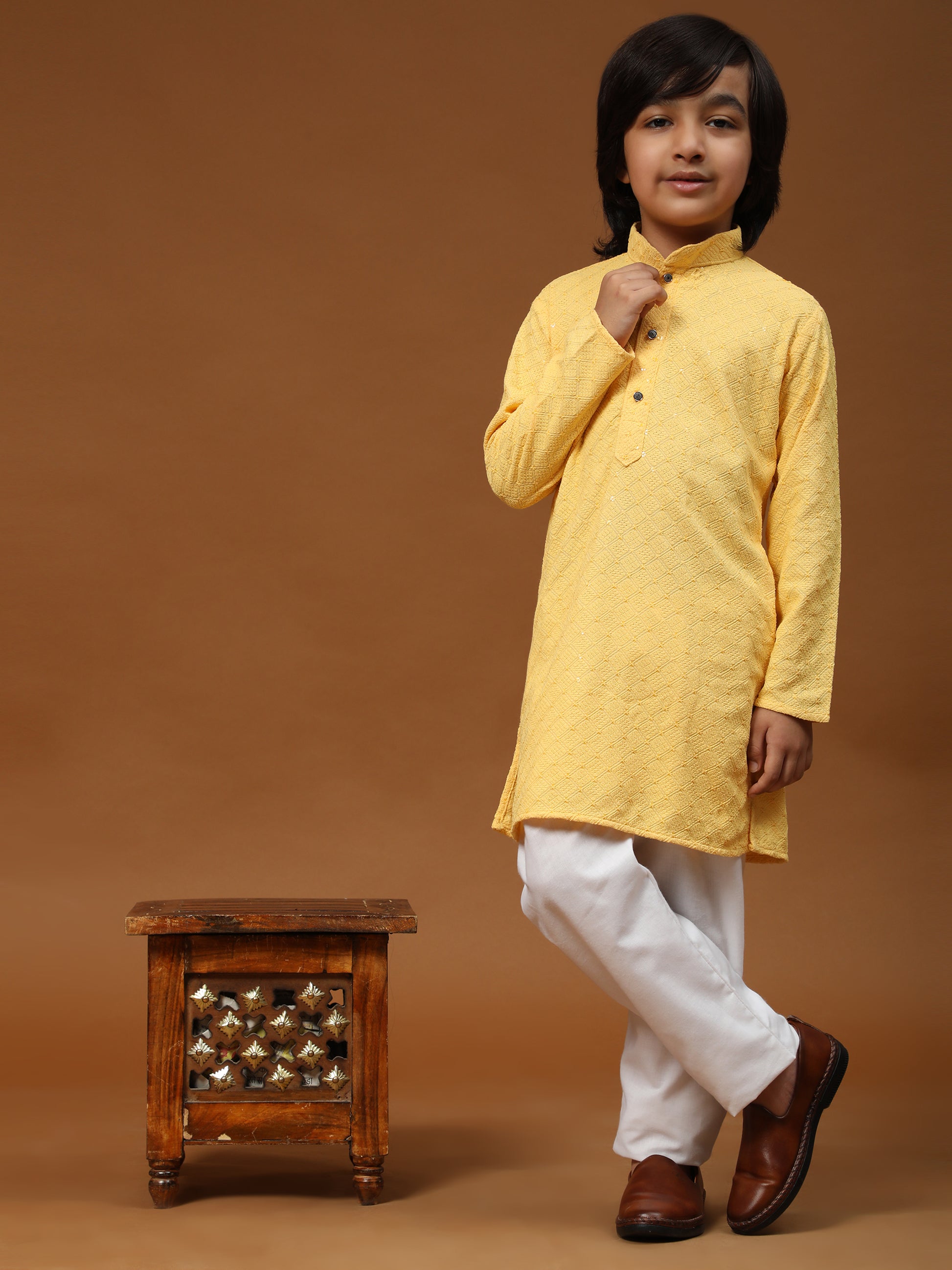 Pro-Ethic Style Developer Boys Cotton Kurta Pajama for Kid's Ethnic Wear | Cotton Kurta Pajama (S-227), Yellow