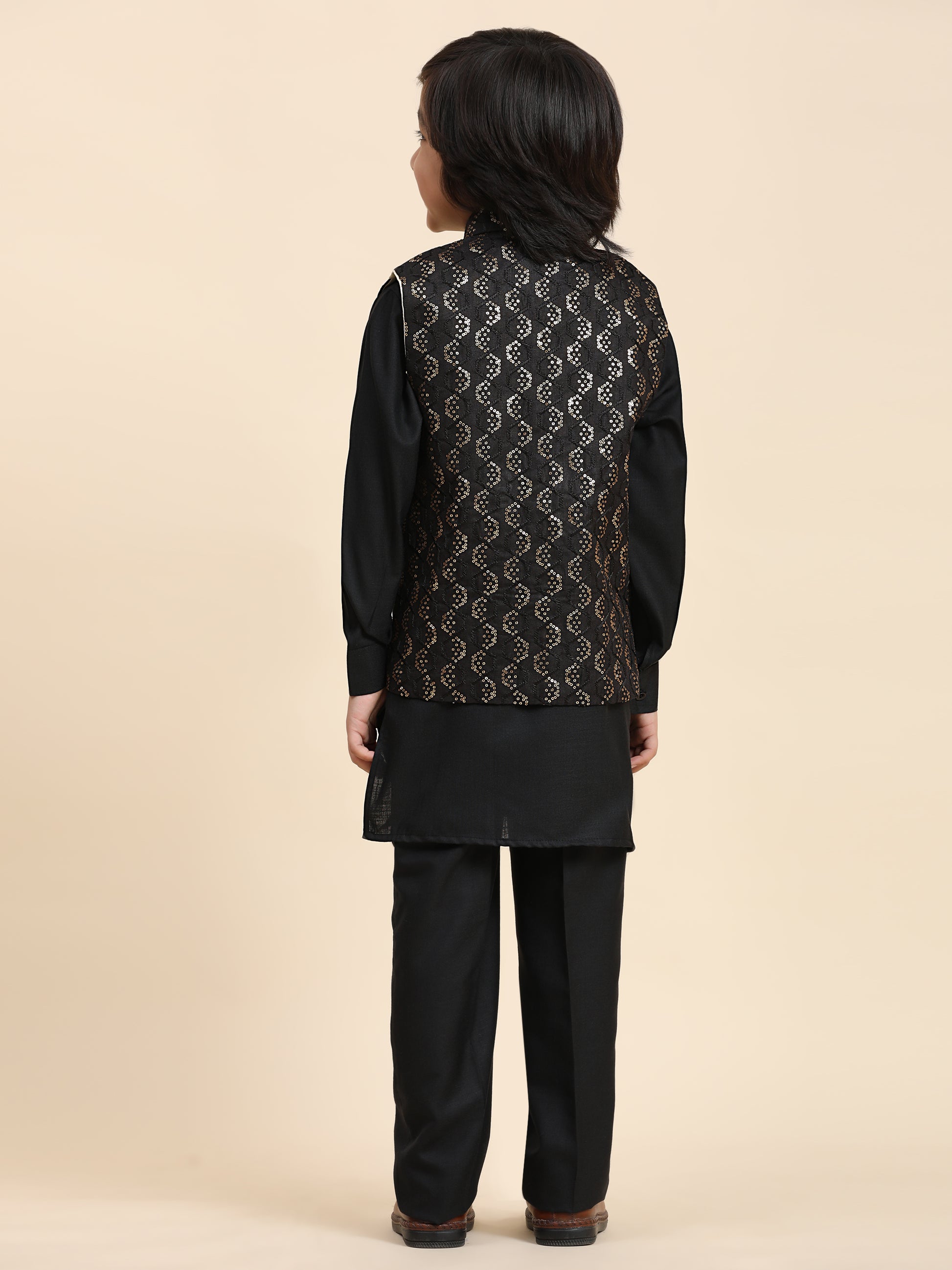 Pro-Ethic Style Developer Boys Cotton Kurta Pajama with Waistcoat for Kid's Ethnic Wear (S-242) Black