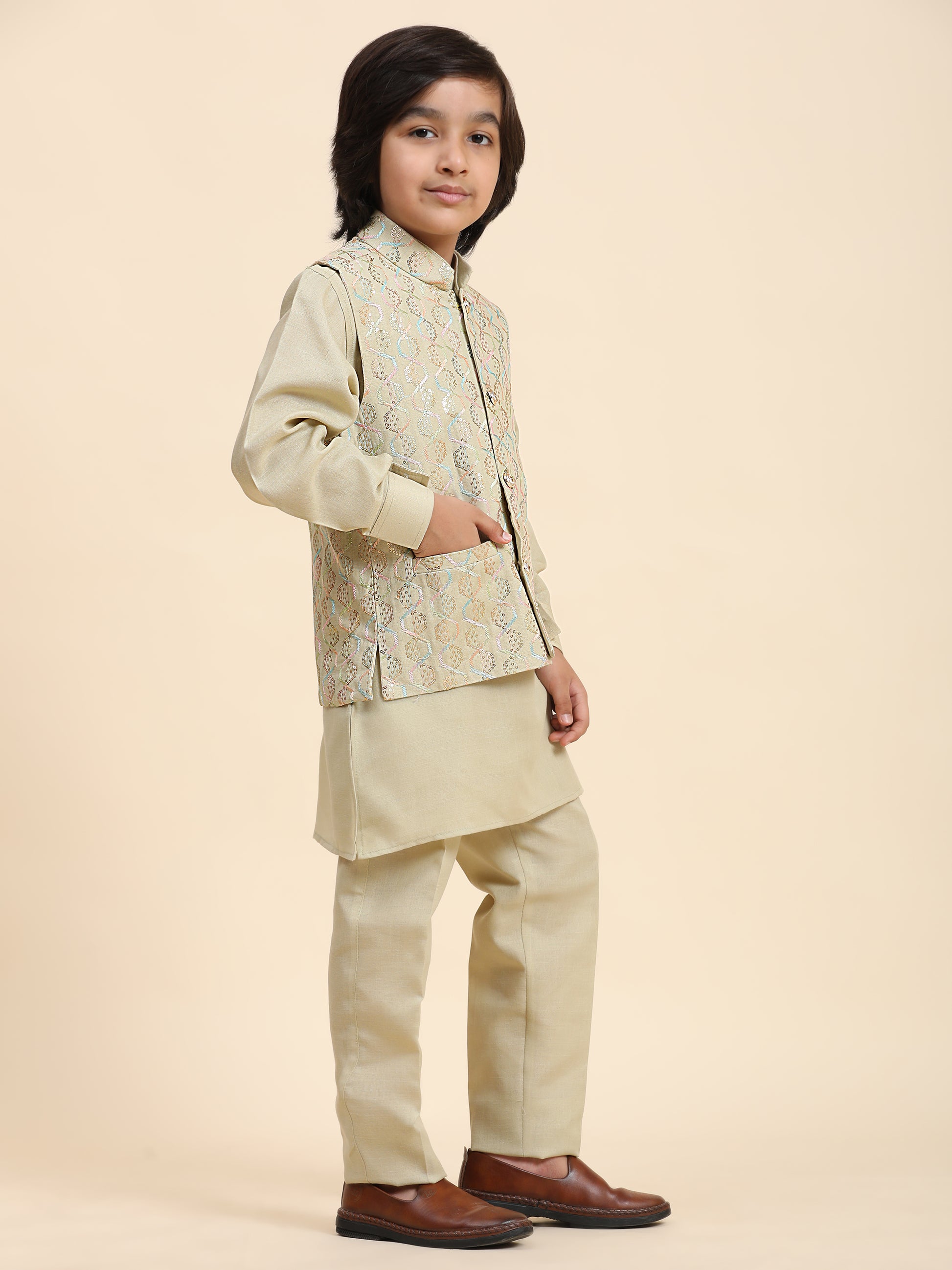 Pro-Ethic Style Developer Boys Cotton Kurta Pajama with Waistcoat for Kid's Ethnic Wear (S-242) Fon