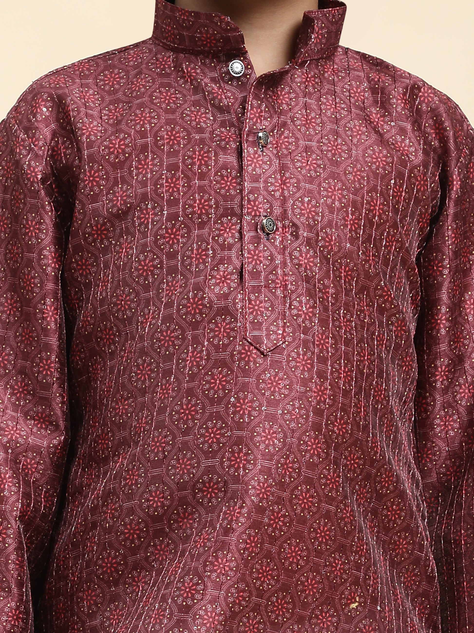 Pro-Ethic Style Developer Boys Silk Kurta Pajama for Kid's Ethnic Wear | Jacquard Silk Kurta Pajama (S-238), Maroon