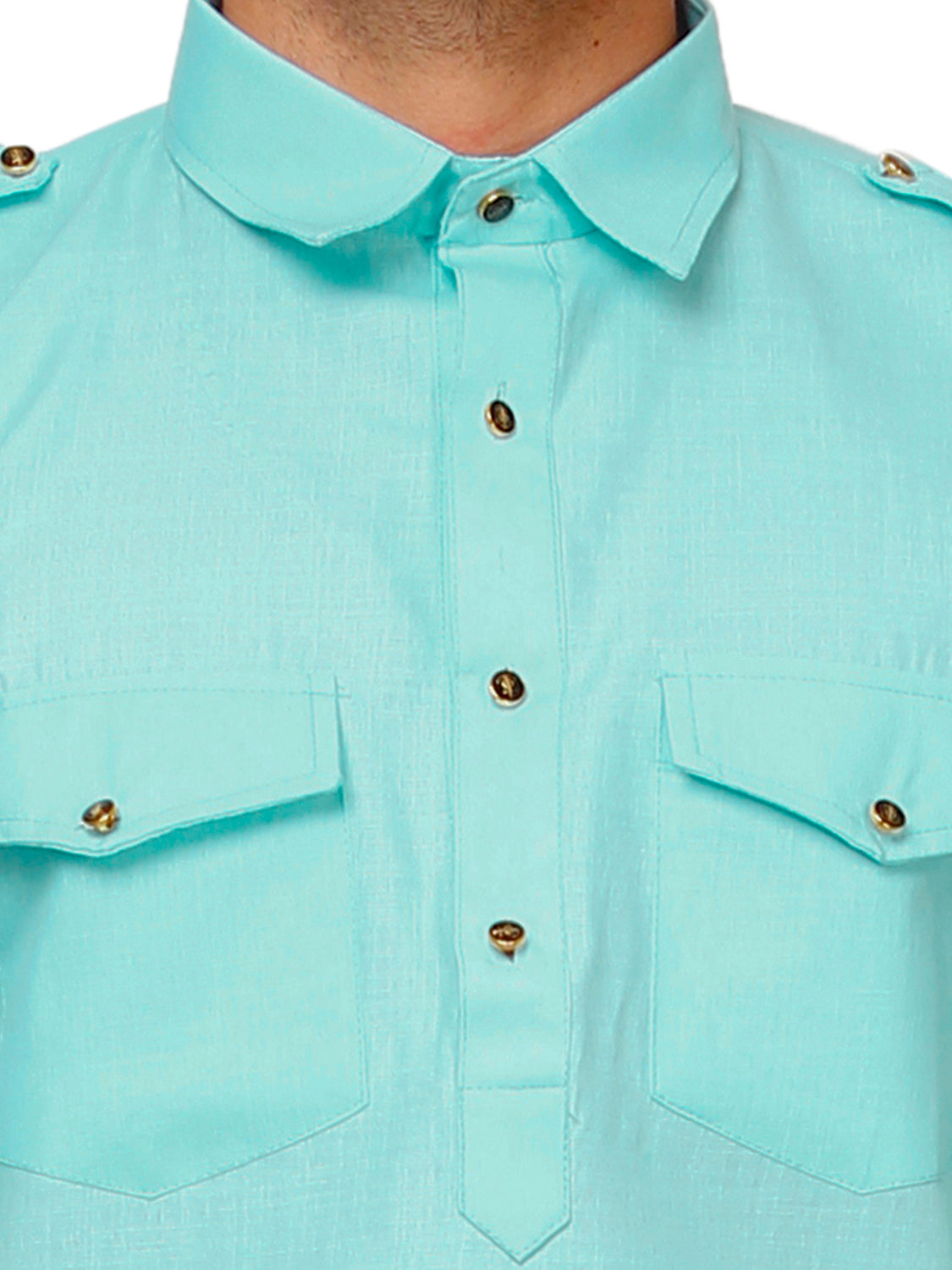 Pro Ethic Men's Pathani Kurta pajama set - Solid | Cotton | Firozi | (A-116)