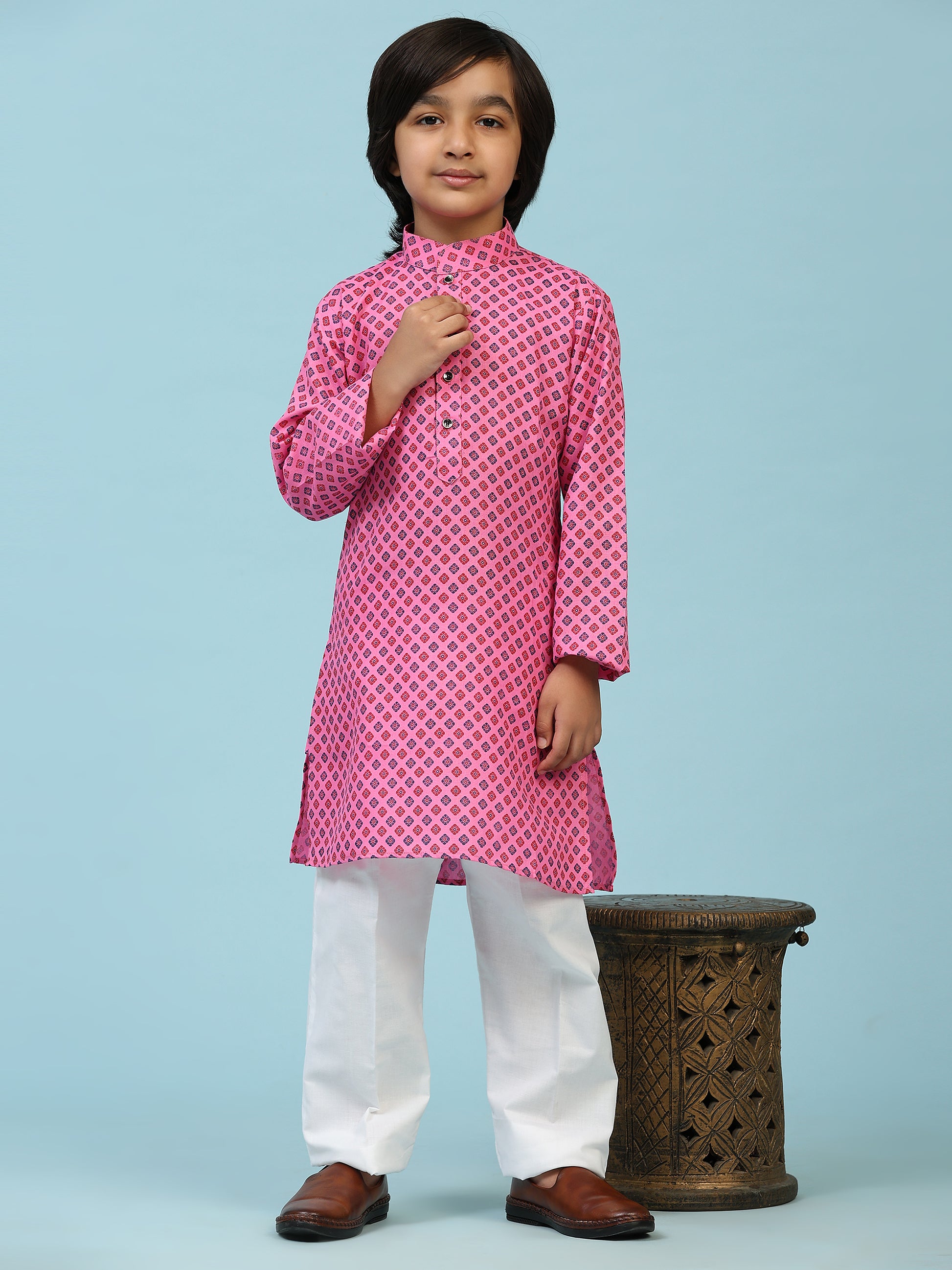 - Fabric Type Of Kids Kurta Pajama Boys: Cotton All Colours are Available Like Blue, Firozi, Mustard, Orange, Pink, Red