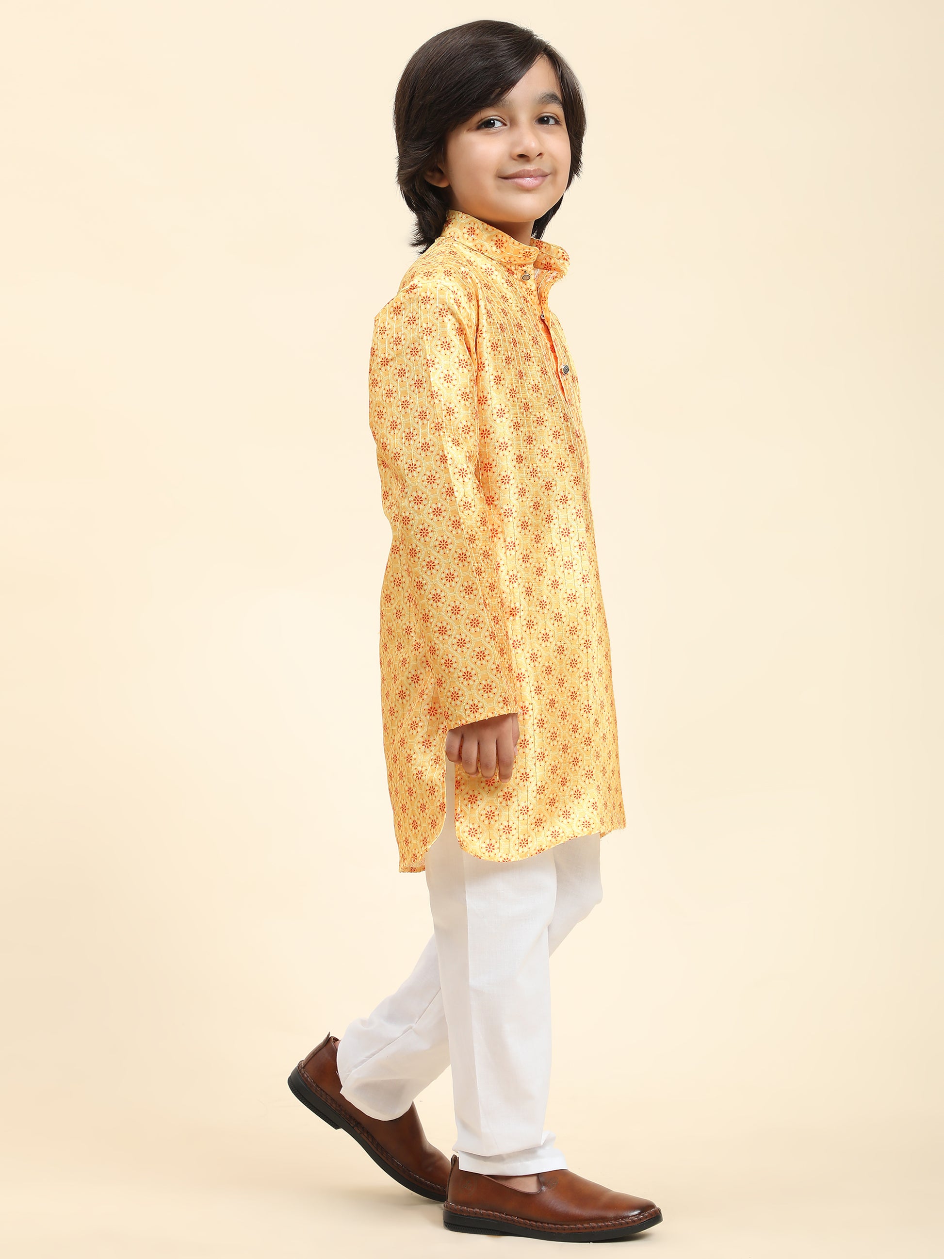 Pro-Ethic Style Developer Boys Silk Kurta Pajama for Kid's Ethnic Wear | Jacquard Silk Kurta Pajama (S-238), Yellow