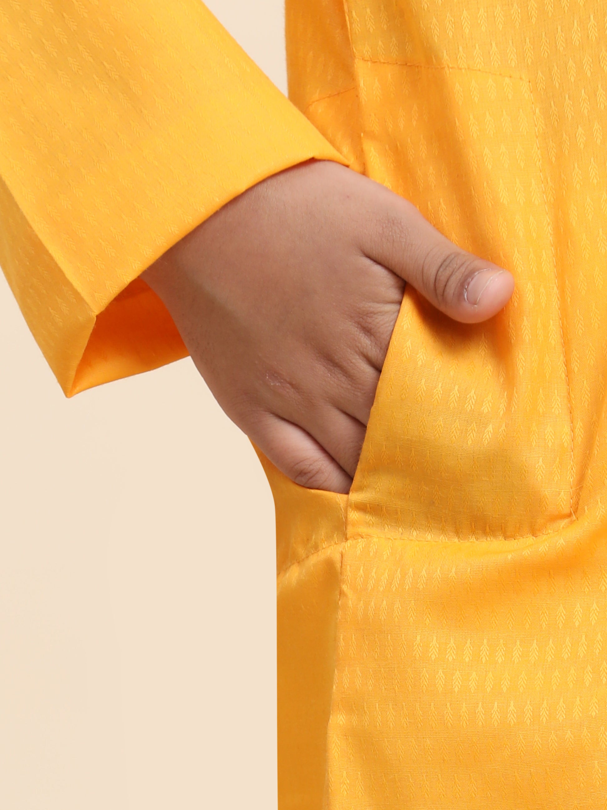 Pro-Ethic Style Developer Yellow Boy's Cotton Self Design Kurta Pyjama for Kids Ethnic Wear (S-241)